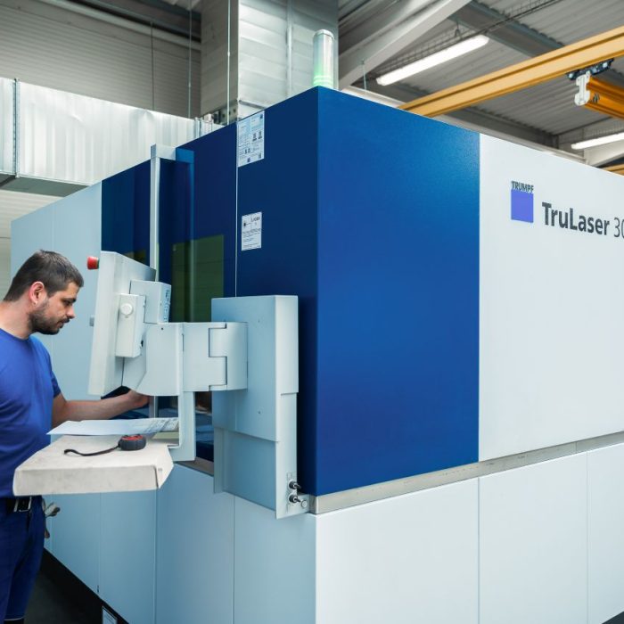 CNC řezání plechu na stroji TRUMPF TruLaser 3030 fiber 6 kW s maximálním pracovním prostorem 3000x1500mm. Odborně zaškolená a zkušená obsluha v kombinaci s vysokou přesností laserového řezání z nás dělá spolehlivého dodavatele.